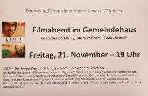 Herzliche Einladung zum Filmabend im Gemeindehaus Freitag, 21.11. - 19 Uhr 🎥 Wir zeigen den Film "Lion - Der lange Weg nach