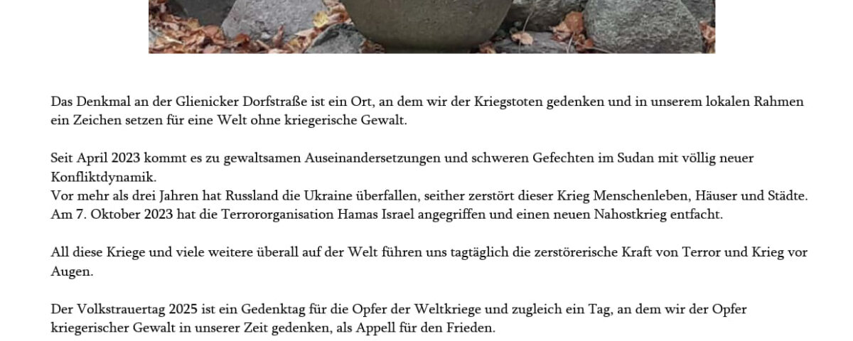 Volkstrauertag 2024 | Volkstrauertag 2023 | Volkstrauertag 2022 | Volkstrauertag 2021 | Volkstrauertag 2020 | Volkstrauertag 2019 | Volkstrauertag 2018 | Volkstrauertag 2017